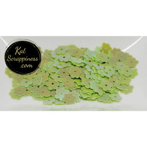 Kat Scrappiness Brand Sequins: 6mm Green AB Flat Flowers