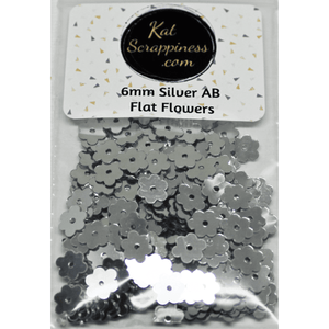 Kat Scrappiness Brand Sequins: 6mm Silver AB Flat Flowers