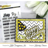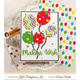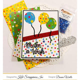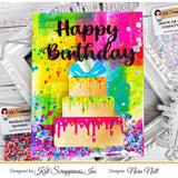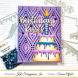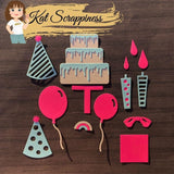 Have your cake and eat it too with the Birthday Essentials Dies from Kat Scrappiness! This die set includes 22 dies that measure approximately: