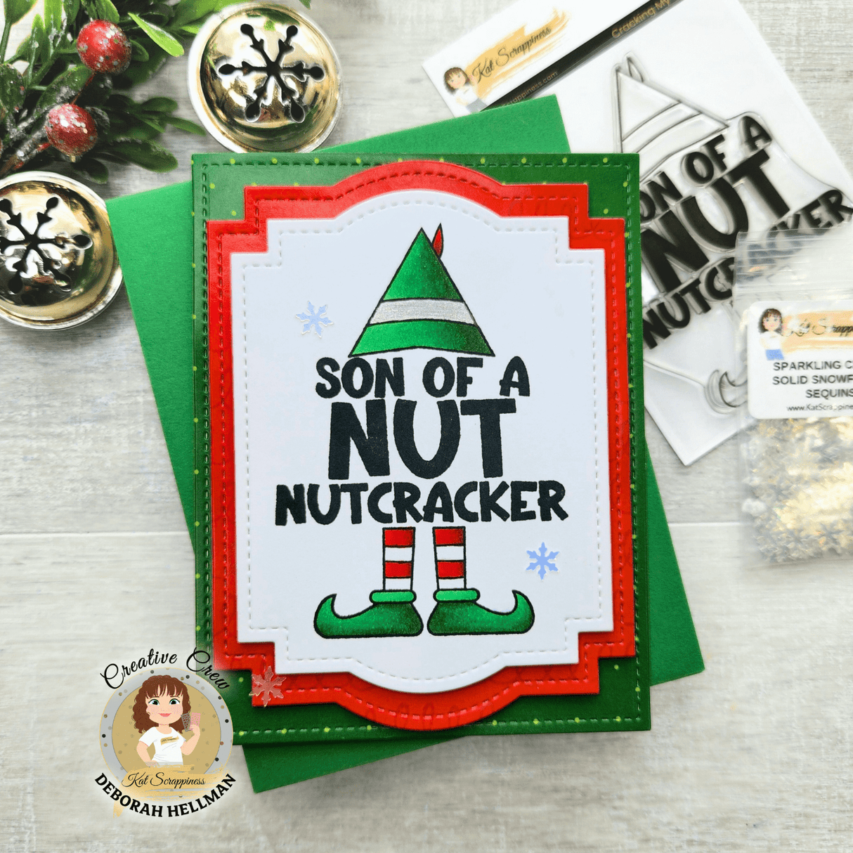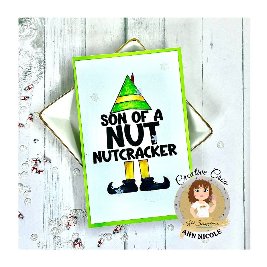 Get ready to crack up with the Cracking My-Elf-Up! 3x4 stamp set. This set features a funny Elf Hat and a heartfelt sentiment that reads "Son of a Nutcracker!" Perfect for adding some holiday humor to your projects!