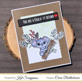Our brand new Koala-ty Time stamp set features three ADORABLE koala bears and is perfect for all of your card making needs. The stamp set features five images and four sentiments. The sentiments include: