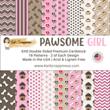 Our Pawsome Girl 6x6 Paper pad is full of adorable dog themed patterns in pink, brown and white. There are 16 designs, two of each design that will make creating your (girl) dog themed projects fun and easy!