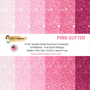 Add a touch of sparkle to your crafts with the Blue Glitter 6x6 Paper Pad. The glitter effect is printed on the paper, giving you the beauty of glitter without the mess. Accentuate your project with the shimmer of glitter, without the use of real glitter. There are 6 shimmery designs in beautiful shades of pink.