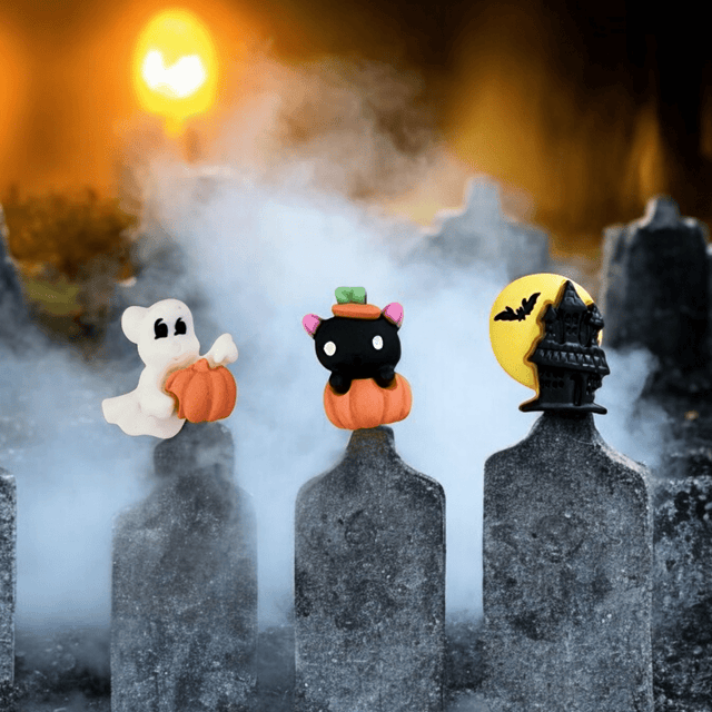 Available for a limited time! These adorable resin charm embellishments add the perfect spooky touch to your Halloween projects. Featuring a cute little ghost holding a pumpkin, a kitty nestled in a pumpkin, and a haunted house with a moonlit background, these charms are both creepy and cute. Each charm has a flat back, making them easy to attach to any craft project. Grab them while you can—they’re perfect for adding some Halloween magic to your creations!
