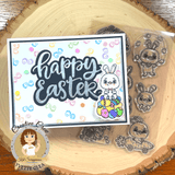 Get ready for the cutest Easter bunny Ever! This adorable stamp set includes eight stamps. Seven fun bunnies and a pair of bunny feet! You will have a blast making cards for your family and friends this Easter using the Hoppy Days Stamps and Dies!