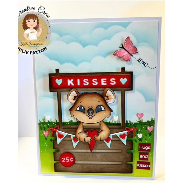 Experience crafting enchantment with our Kissing Booth Craft Die! Perfect for romantic scenes in cards or scrapbooking, this precision-crafted die adds a touch of whimsy. Ideal for Valentine's Day or year-round love-infused projects. Let your creativity run wild, creating charming, heartfelt moments effortlessly. You can use this card as a shaker die or you can tuck in your favorite character or die cut behind the booth like we did with our beloved Quokkas in the sample images below!