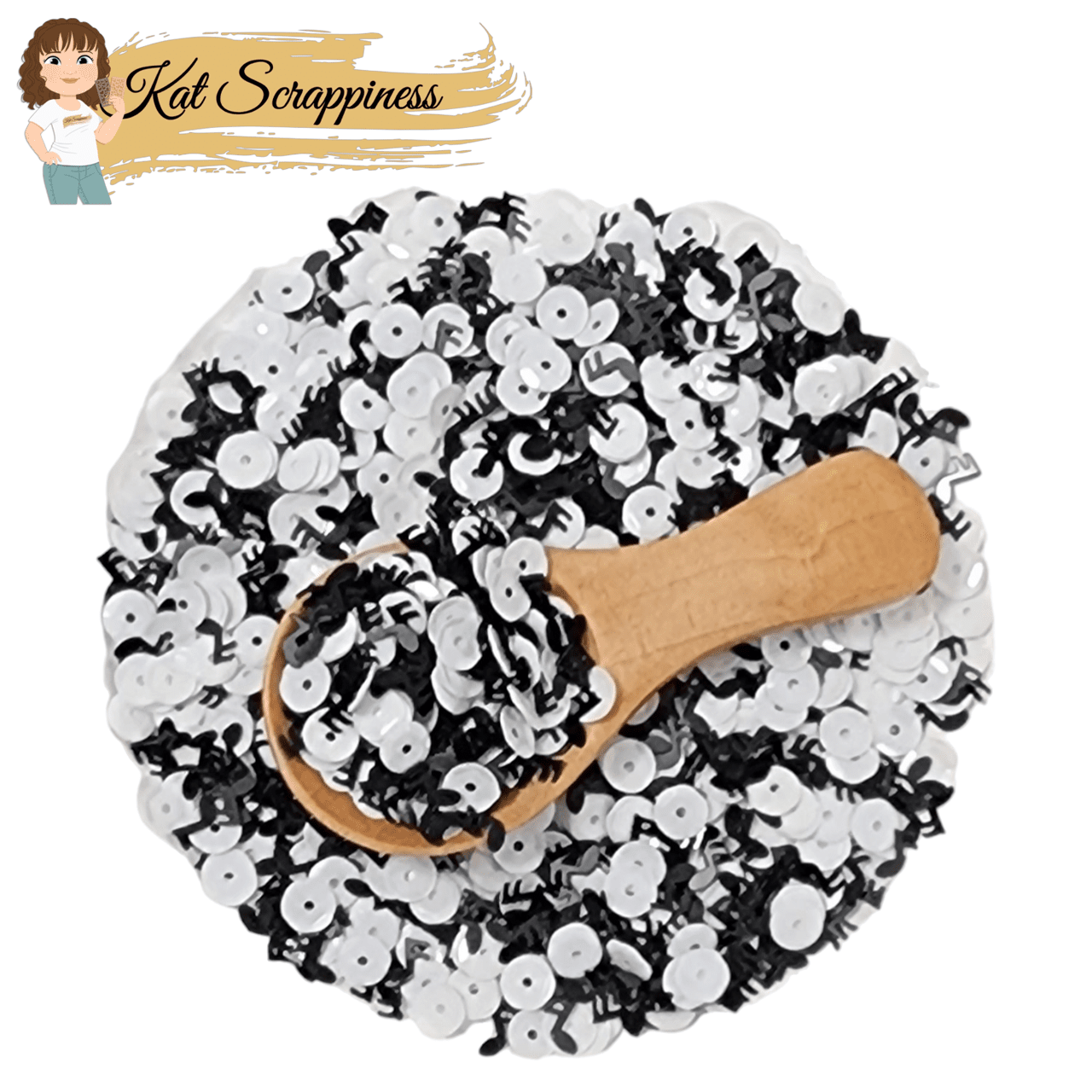 This exclusive mix of sequins combines black music note and white cupped sequins creating a symphony of musical melodies. Each package contains approximately 1 1/2 - 2+ teaspoons of this magical mix, carefully curated and sealed in a clear resealable plastic bag. Elevate your projects with this must-have embellishment!