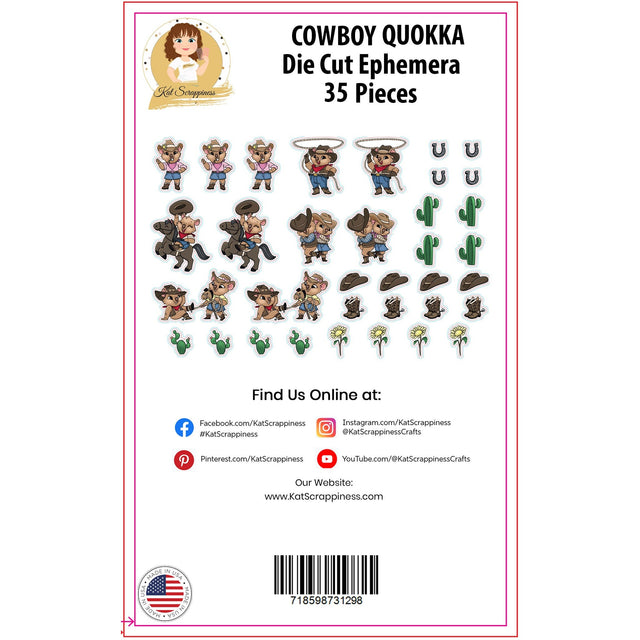 Each piece is printed on high-quality cardstock and pre-cut for your convenience. With adorable quokkas, cowboy hats, boots, cacti, and other Western-inspired elements, these ephemera pieces are perfect for card making, scrapbooking, journaling, or any other creative project.