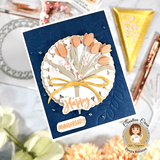 Introducing the new Layered Tulip Bouquet Dies from Kat Scrappiness. Pop up the layers of your tulips to give a 3d dimensional look. Finish up your bouquet with the cute bow die included.