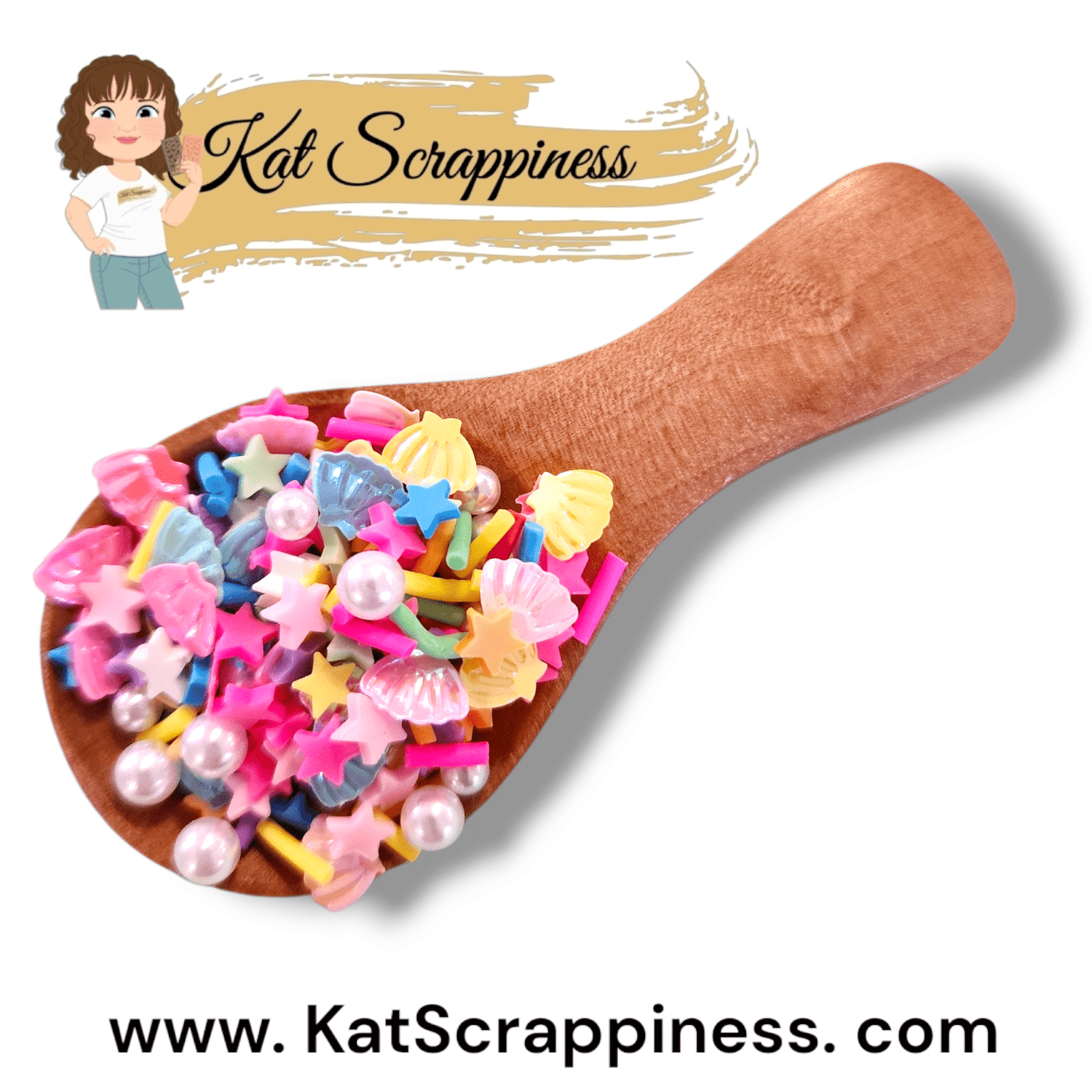 Colorful mix of sprinkles, stars, seashell sequins, and pearls