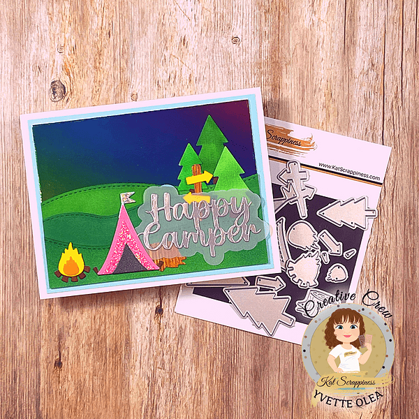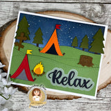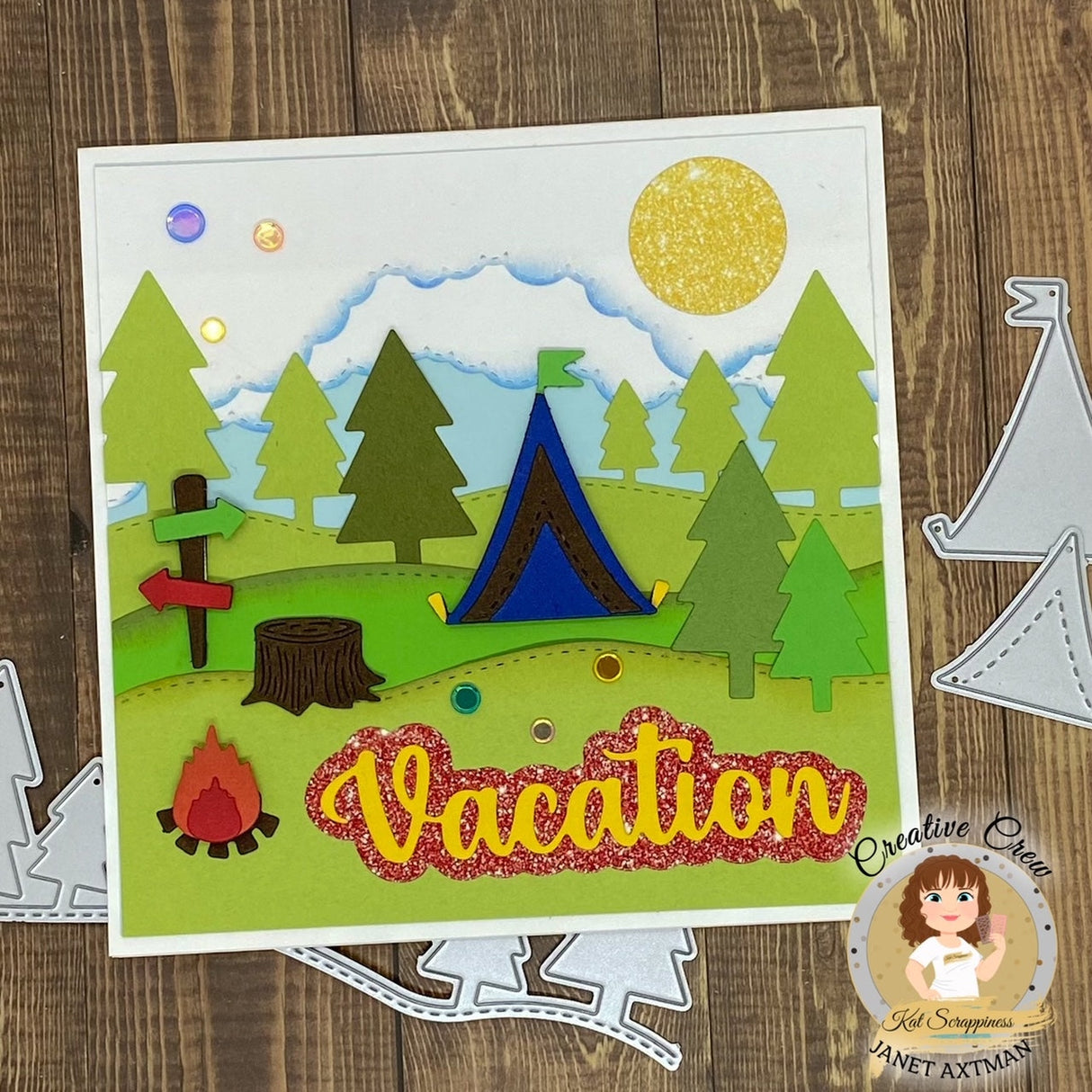 Let's Go Camping! Create your own camping scene using our newest die set! This set is so fun for camping enthusiasts! Included are sixteen dies that create a layered tent, tree, sign and campfire.