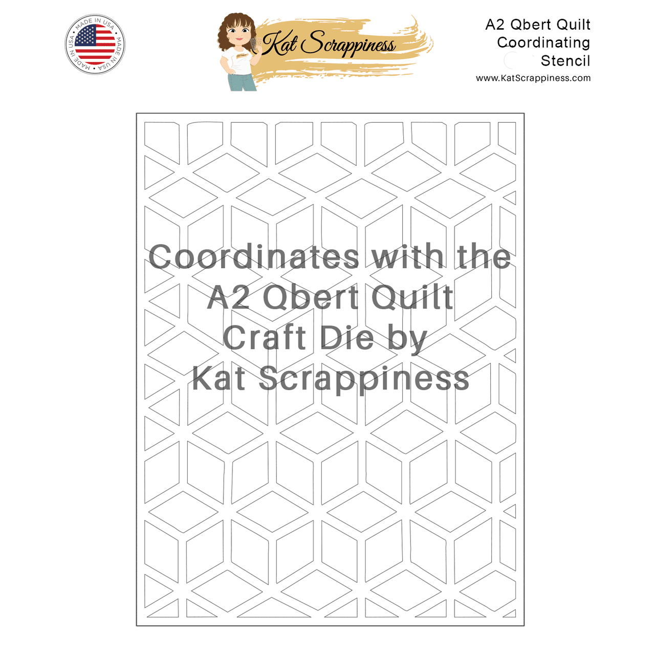 Discover our innovative Qbert Quilt Coordinating Stencil! This stencil effortlessly complements our A2 Qbert Quilt Die (sold separately)! Simply die-cut your card panel, apply the stencil, and add color with inks or any medium to create beautiful quilt blocks! There are endless possibilities with this versatile set - check out the stunning designs by our design team below!