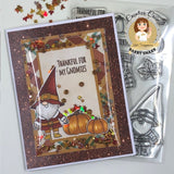 The ©Thanksgiving Gnome stamp set features eight images and three sentiments.