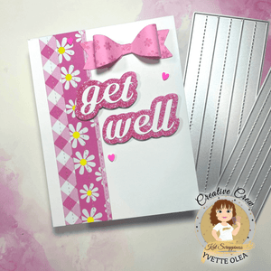 Included in this die set are 4 sets of strips (in threes) dies in strips with stitched detail down the middle. So you get 12 strip die cuts from this one set! These dies identical to our Slimline Stitched Strip Dies but made for A2 cards. (5 1/2" long cards)
