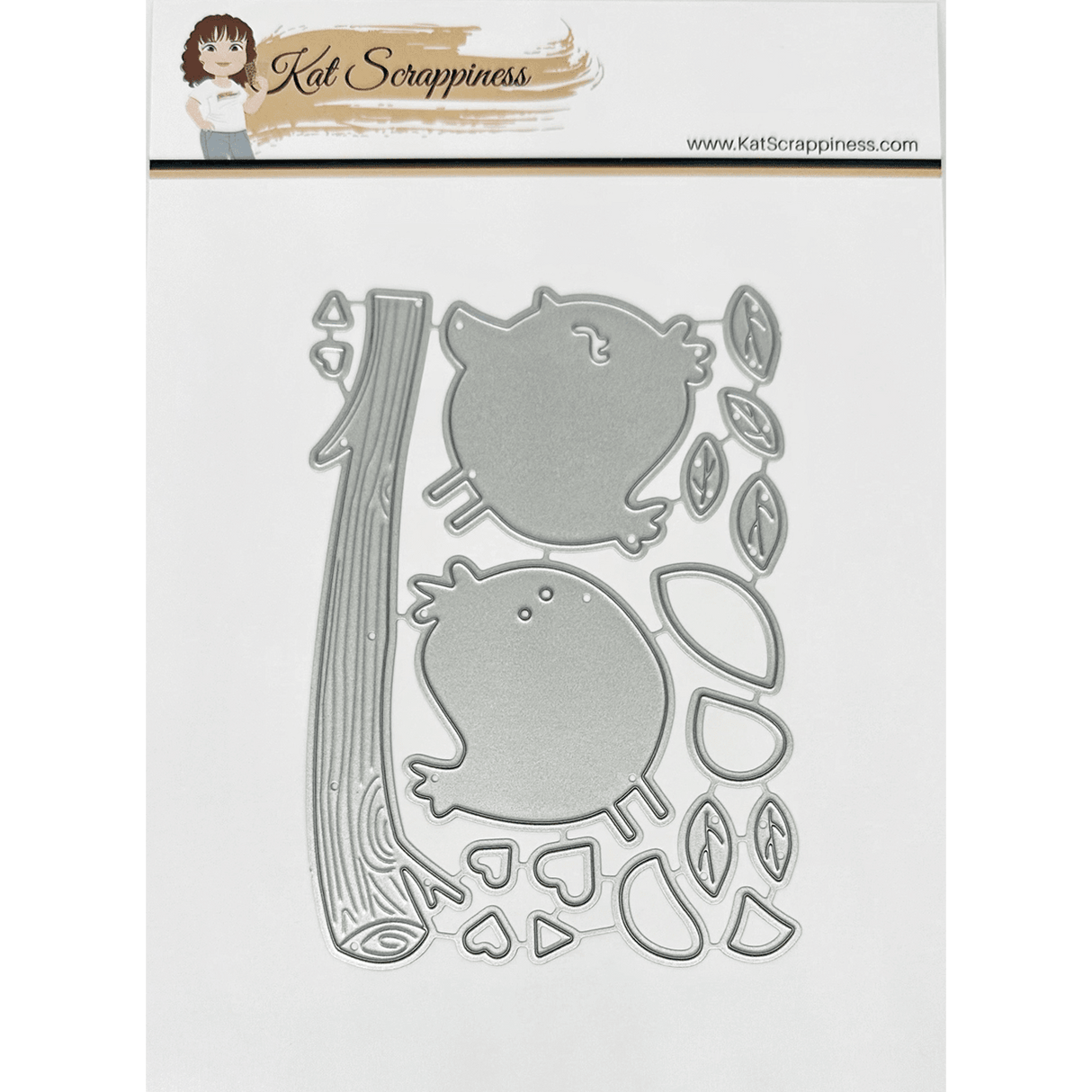 What could be sweeter than two love birds on a branch? This die set includes a branch die, two birds, with wings and different faces. It also comes with layered leaves and hearts. to fill in your love bird scene!