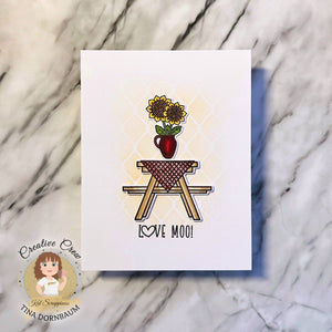 We are so excited to share with you our Farmhouse 6x8 Stamp Set which includes 14 stamps that make it easy to add a touch of country flair to your projects. These images include: