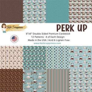 Our Perk Up 6x6 Paper pad is full of cool coffee themed patterns in green and brown. There are 12 designs, four of each design that will make creating your coffee themed projects fun and easy!